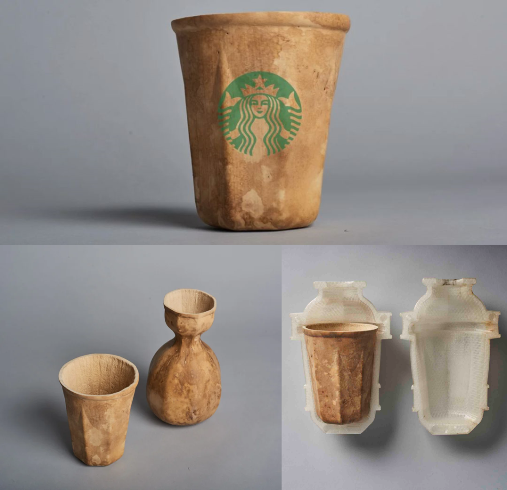 据统计,星巴克每年都要用掉大约250亿的纸杯。而制造纸质咖啡杯通常需要用到塑料聚乙烯,还会产生超过100克的二氧化碳,在使用后,也只有四分之一可以回收利用。为寻找一次性杯子的替代品,星巴克发起了一个叫做“下一代杯子”的挑战赛。图中这款叫做HyO-Cup的杯子来自日本的设计师Jun Aizaki。这款杯子是100%可生物降解的,因为,它的制作材质就是葫芦,也可以说这杯子就是长出来的!设计师采用3D打印做出模具,然后套在还没有长大的小葫芦上,等到葫芦长成后,就变成了杯子的形状,最后,把葫芦里面掏干净,并经过打磨处理,就变成了一个咖啡杯。以此类推,你想要葫芦长什么样都可以,只要做出对应的模具就好。该设计已入围前12名,也就意味着在不久的将来,去星巴克可能就用葫芦喝咖啡。不少网友表示,杯子倒是可降解了,却又增加了很多不可降解的模具,想法和创意还不错,但论实用,还是纸杯靠谱!