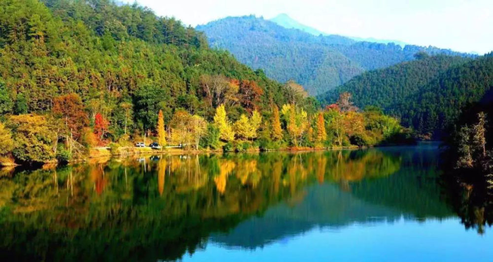长潭旅游区的长潭库区两岸,生长着连片1000多亩的枫树。悠悠碧水倒映下灿若红霞的红叶沿十里水道与天际相接,置身其中,让人如痴如醉。