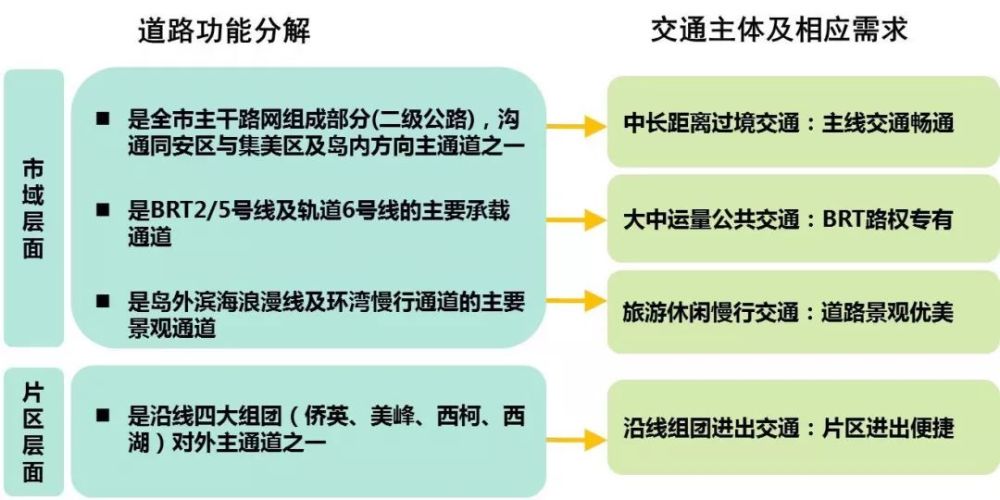 市交通研究中心结合沿线用地布局,从市域和片区两个层面提出滨海西大道的交通功能定位: