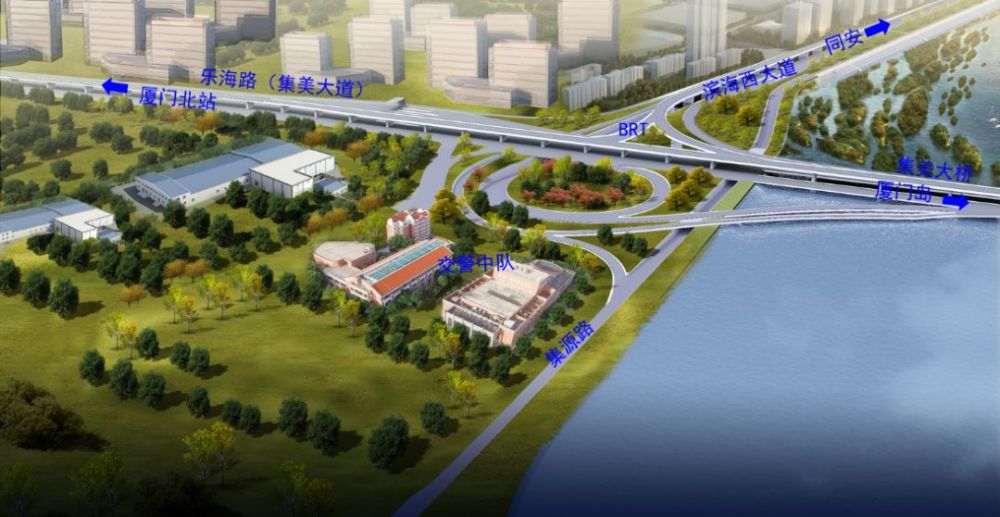 集美大桥立交增加北往西方向BRT专用匝道,解决环东海域东部新城往来厦门北站方向BRT出行需绕道岛内问题,保障公共交通民生出行。