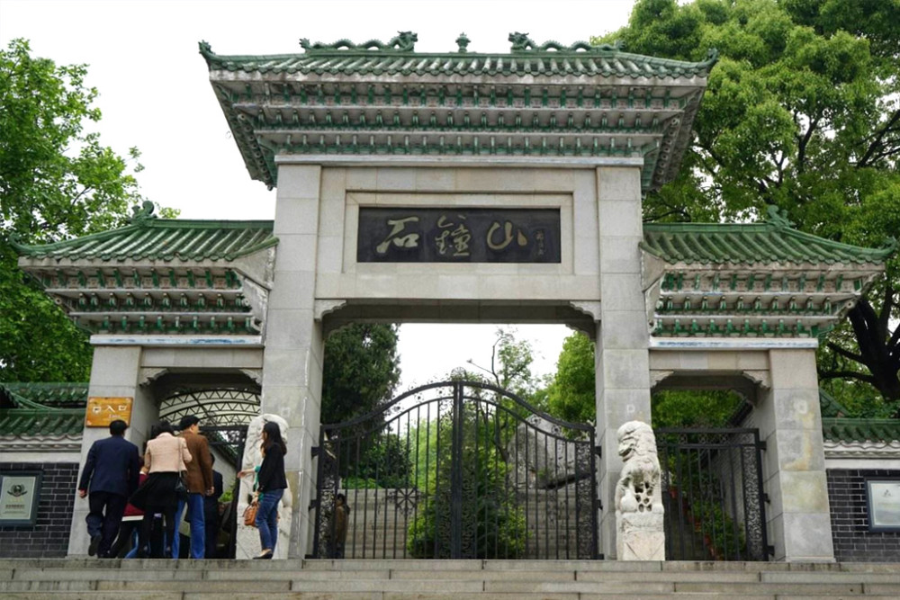 石钟山坐落在湖口县双钟镇,雄峙于长江之滨,鄱阳湖口,三面临水,一面着陆,形如半岛。全山分上下两部分,面南临湖的是上石钟山,靠北濒江的是下石钟山。两山总面积有十万平方米,海拔67.7米。山虽不高,但悬崖峻拔,突兀峥嵘,插湖锁江,气势不凡。