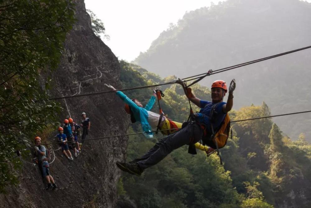 这里有亚洲第一长的飞拉达线路,真正的勇士敢于在悬崖峭壁上挑战自己,脚蹬、扶手、梯级、缆索,飞檐走壁,完成一次惊心动魄的千米攀爬。在陡峻的崖壁之上,挑战身心极限,欣赏山谷间最纯粹的自然之美。
