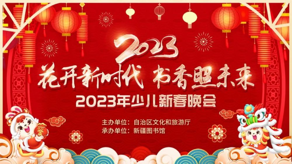 1月18日,举办“花开新时代,书香照未来”2023年新疆图书馆少儿新春晚会,晚会通过新疆各族儿童载歌载舞的形式,表达对伟大祖国的热爱,激励广大少年儿童奋发向上;