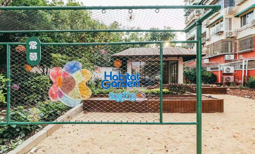 淞二常馨生境花园规划总面积约428平方米,设有种植园、枯木桩花园、阳光议事厅等多个不同区域,整个花园在空间布局上兼顾到生物栖息和居民观赏、休闲等多种需求。