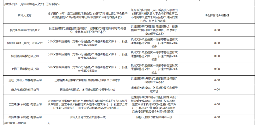 《成都轨道交通8号线二期、13号线一期、10号线三期、17号线二期、18号线三期、30号线一期及轨道交通资阳线工程电梯及自动扶梯设备采购安装及运维服务项目评标结果公示(流标)》发布,根据公告,无中标候选人,8家投标单位全部废标,废标理由各有不同。