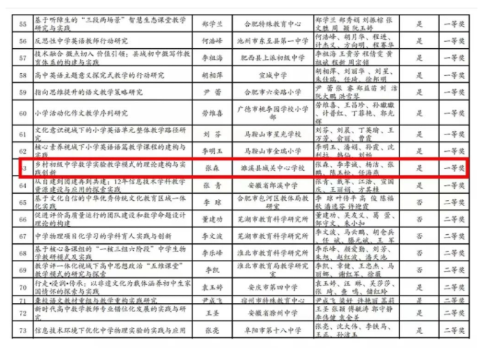 2022年10月17日,安徽省教育厅发布《关于2022年基础教育省级教学成果奖拟获奖名单的公示》。拟确定144项成果获安徽省2022年基础教育省级教学成果奖,其中拟推荐前64项成果上报教育部参评基础教育国家级教学成果奖。濉溪县城关中心学校拟获奖。