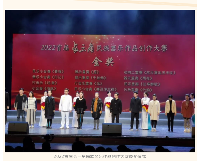 2022年11月23日,2022首届长三角民族器乐作品创作大赛决赛在无锡大剧院落下帷幕。经过两天的激烈角逐,濉溪县原创作品——民乐小合奏《喜讯传北京》参与了此次大赛决赛,并荣获大赛金奖。