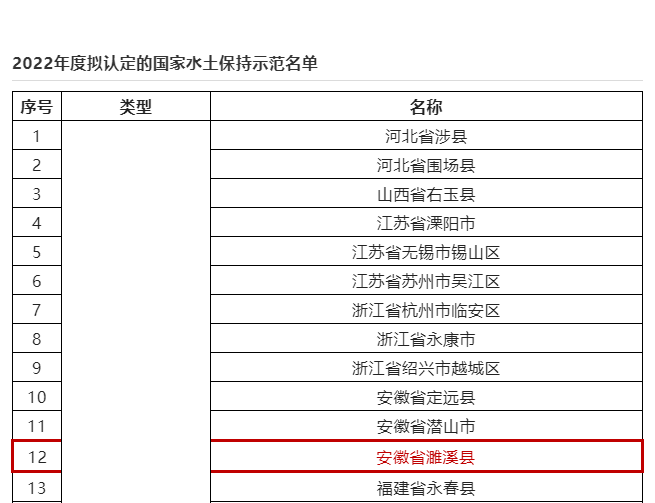 近日,2022年度拟认定的国家水土保持示范名单公示,濉溪县榜上有名,跻身全国水土保持示范县行列!