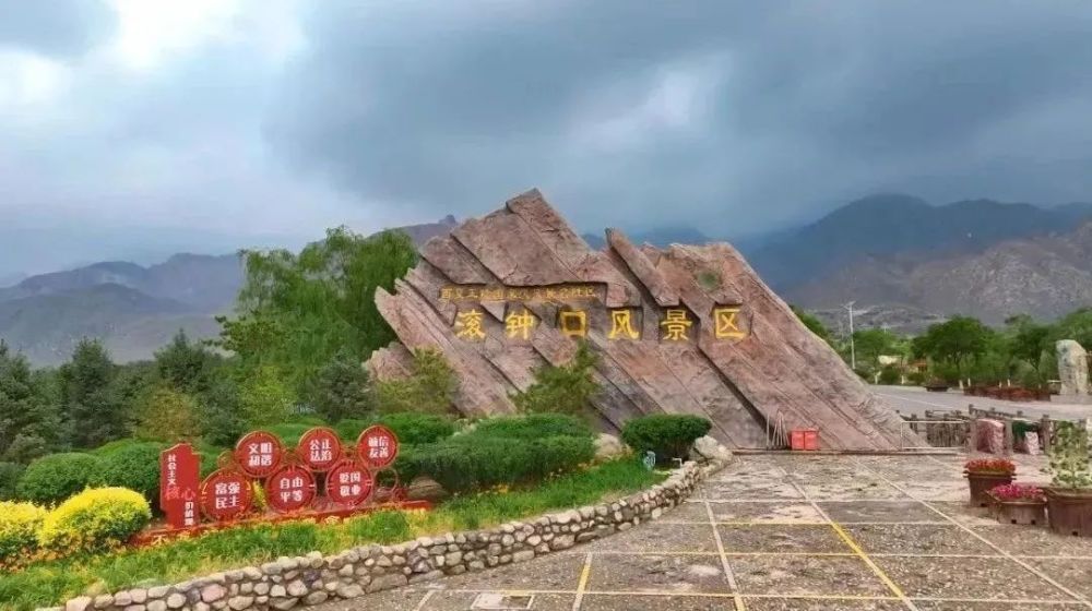 滚钟口,俗称"小口子",景区三面环山,东面开口,形似大钟。历史上曾是李元昊的行宫,现为贺兰山又一著名的风景游览区。在笔架峰上的望海亭,游客可观赏到“日出笔架”“月光别钟铃”“石嶂穿白云”等自然景观。如逢朝晖西映时,还可观赏到“贺兰佛光”之景。