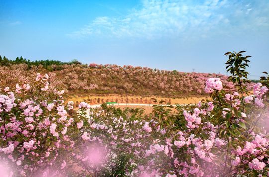 每到春天,万株牡丹竞相怒放,紫红、粉白、白色的牡丹花将整片山坡点缀得煞是好看。在绿叶的映衬下,盛开的牡丹高贵而妖艳,周边空气里也散发着怡人的牡丹花香,点缀出了无限春光。摄影爱好者、画家以及游客纷至踏来。