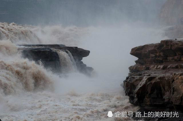 壶口瀑布是中国著名5A级风景名胜区,也是世界地质保护区,和国家地质公园。壶口瀑布位于黄河的中游,黄河水经过上游的冲刷,夹杂着泥土,一路狂奔,在壶口这个地方,黄河河面300多米,在这里被挤压到30米的狭缝中,水流突然变得湍急,再加上巨大的落差,黄河水在壶口这里,蓬勃而出,一泻千里,轰轰作响,非常壮观,我去壶口旅游印象深刻,由心的感叹,大自然的神奇魅力。
