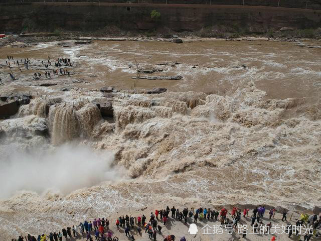 壶口景区有2个,分别是山西侧的壶口景区,和陕西侧的壶口景区,观看感受大同小异,他们的区别是,一个是从壶口的上方往下观看,一个是从壶口下方往上方观看,侧重点不同,都很壮观,进入壶口景区内,满眼的都是湿漉漉的巨石,这是黄河水拍打,形成数百米的水雾形成的。黄河岸边,都是用一米多高的铁丝网,全部包住,如果是平缓的岸边,是可以走到围栏处,近距离欣赏黄河美景,如果是水流湍急处,我们是不能靠近围栏的,狂泄的黄河水,剧烈地拍打着岸边的巨石,河水溅出数百米,围栏处有河水拍打过来,所以我们最好还是,不要去到围栏的跟前,再说我们的相机和手机都是怕水的,湿水了就不好了。