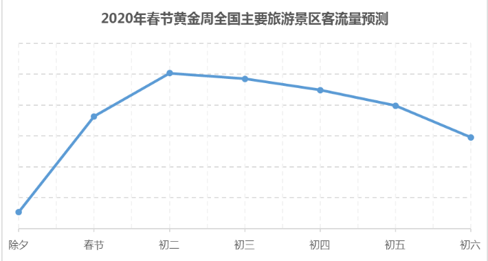 部分旅游机构预测显示,2020年春节黄金周期间,全国主要旅游景区的客流最高峰将出现在1月26日(大年初二),除夕则是整个黄金周期间客流量最低的一天。