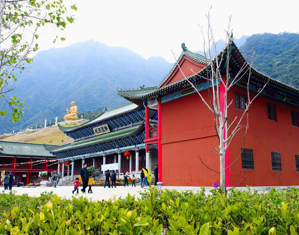 莲花山,因九峰环抱,状似莲花而得名,东西绵延15公里,主峰犁桦尖海拔999米。是集生态休闲度假、佛教文化旅游、科研科普于一体的风景名胜区,自然景观独具特色,文化底蕴深厚,古迹遗址众多。