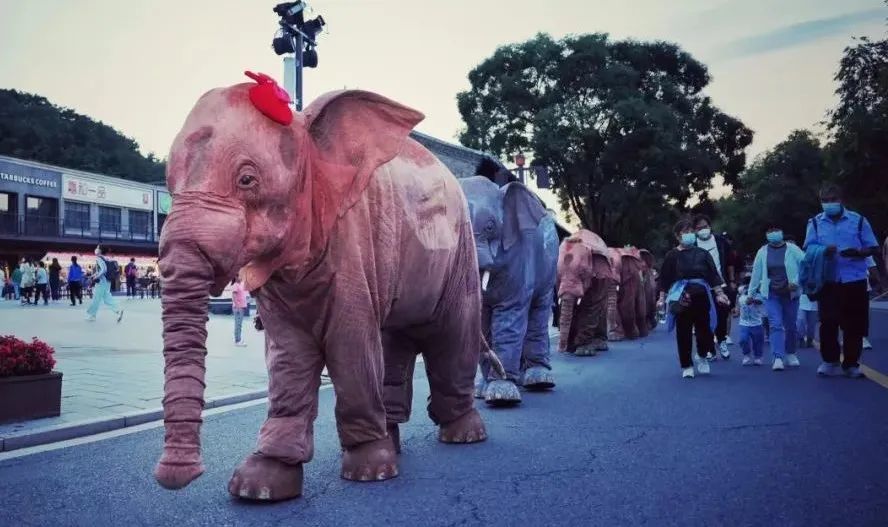 为突出夜长城文化内涵,突出长城精神,八达岭夜长城项目中推出《大象来了》快闪演出,由中国木偶剧院根据2021年“云南省亚洲象群北移南归”的热点事件艺术创造而成,曾在登上央视春晚的舞台。在文化街区,一比一仿真大象用长长象鼻子与游客互动,演绎出人与自然和谐共生的美好画面,也传递出与长城精神相统一的“守望和平、友好往来”的内涵。
