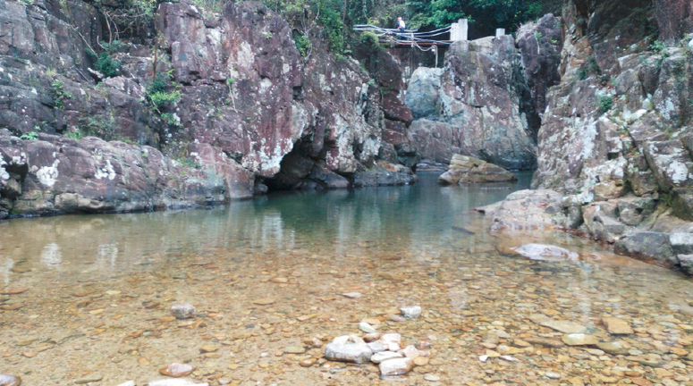 距南昆山旅游核心约半公里处,有一段小溪。河中四处是乱石,一连有七个小水潭,小水潭上下游又有一个大水潭。大水潭清莹见底,成群结队鱼儿游动。潭边有二块呈红青绿色番禺大石,边沿有图案设计,形近罗裙,叫罗裙石。河里也有一番禺大石似台镜,叫梳妆台镜子石。梳妆台镜子石旁,有一环形小池,叫去卸妆池。这一大水潭便是南昆山旅游景点之一----仙女潭。七个小潭则叫七仙池。因为这儿石多古怪,文人雅士采景名“石河奇景”。