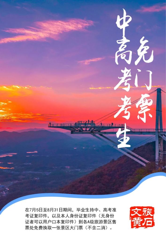 免票对象为黄石市(含大冶市、阳新县)中、高考毕业生。