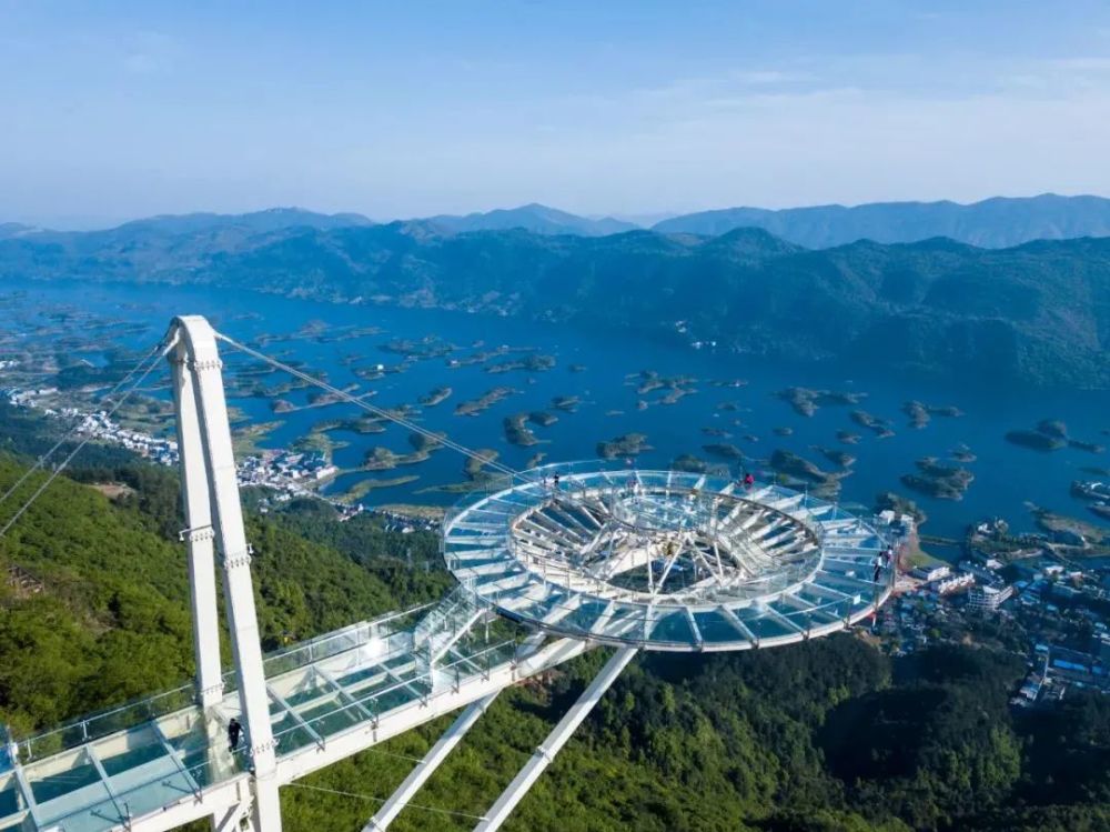 国家AAA级旅游景区。在1002个岛屿之上、520余米山巅,一座占地近600平方米的乳白色钢架全玻璃观景平台“天空之城”,悄然打开一个全新俯瞰千岛仙境的视角。这一国内最大、创下世界吉尼斯世界纪录的单体玻璃平台成为全国网红打卡点,登上这座旅游新地标,眼前云海涛涛、层峦叠嶂,脚下步步惊心、千岛竞秀、蓝绿胜景,美不胜收。
