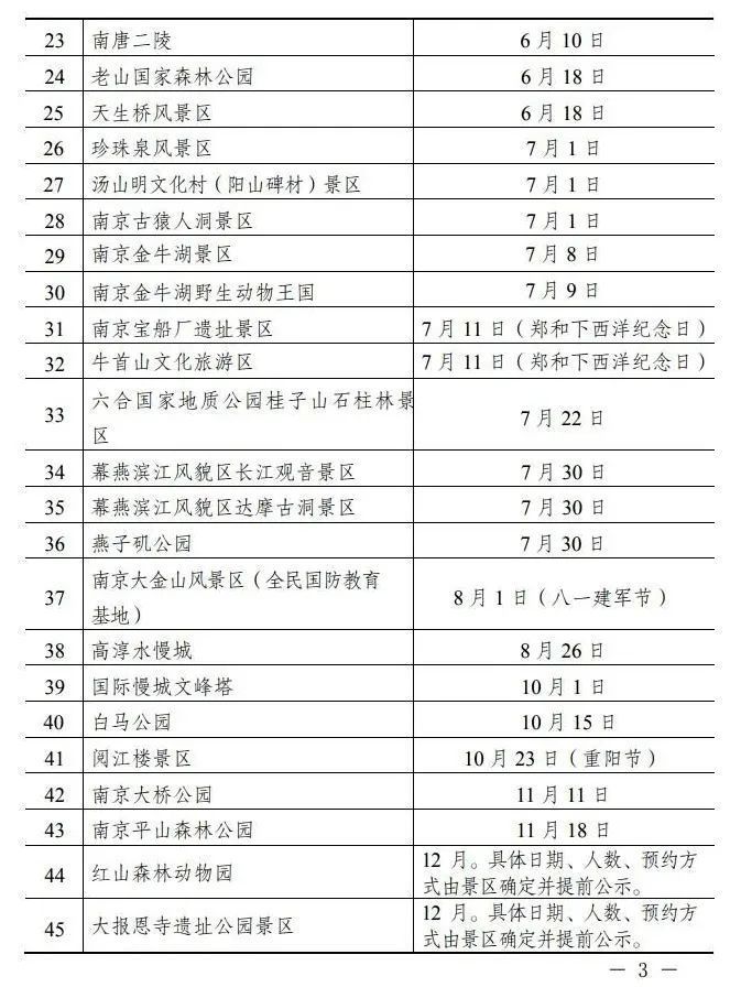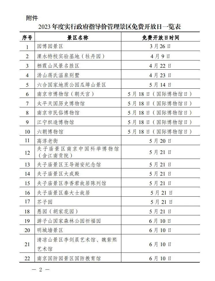 2023南京景区免费开放日历
