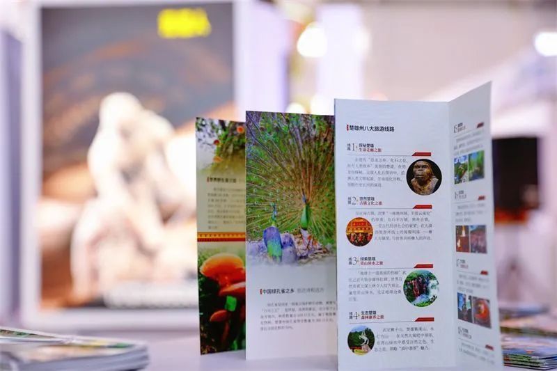展区现场,工作人员通过发放旅游宣传手册、现场宣传讲解、开展民族歌舞表演等方式,充分展示楚雄“世界恐龙之乡、东方人类故乡、世界野生菌王国、中国绿孔雀之乡”四张世界级名片和优质文旅资源。由楚雄州文化和旅游局精心准备、重点推出的八条精品旅游线路,受到参展宾客的欢迎,前来楚雄展区咨询的人络绎不绝。