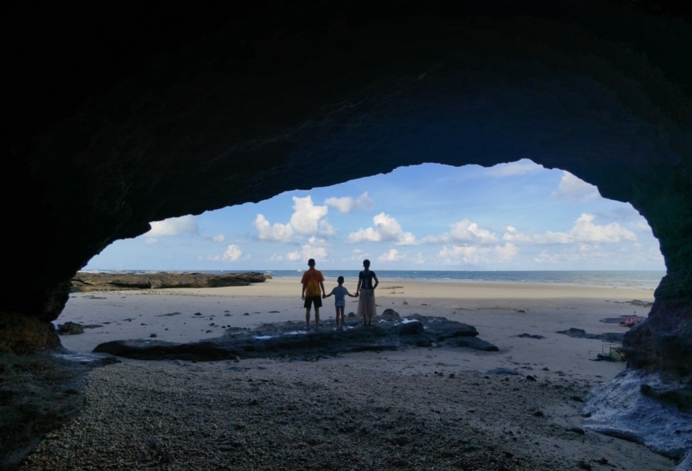 看完日出,赶到滴水丹屏拍照打卡,感觉那不是我们喜欢的景象。然后赶紧赶回石螺口海滩右侧拍崖洞框相片(这个崖洞只有上午退潮后才能拍照,傍晚时是被水淹着的)。