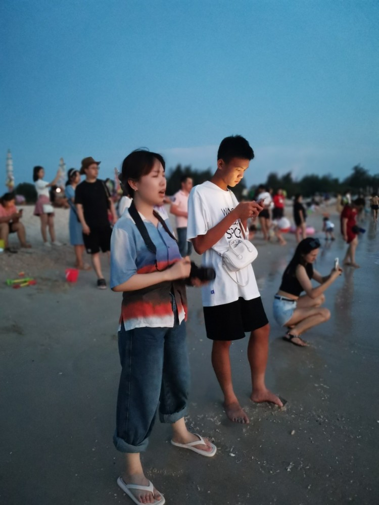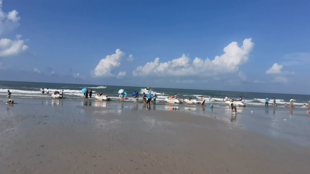 石螺口,如其名曰,海滩上全是小石螺,洞洞鞋戏水时发挥大作用。退潮后的图片可参考下图,遮阳伞下去3米左右的地方就是傍晚戏水的地方,脚下踩的就是全是小石螺,很绊脚。