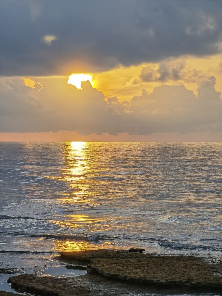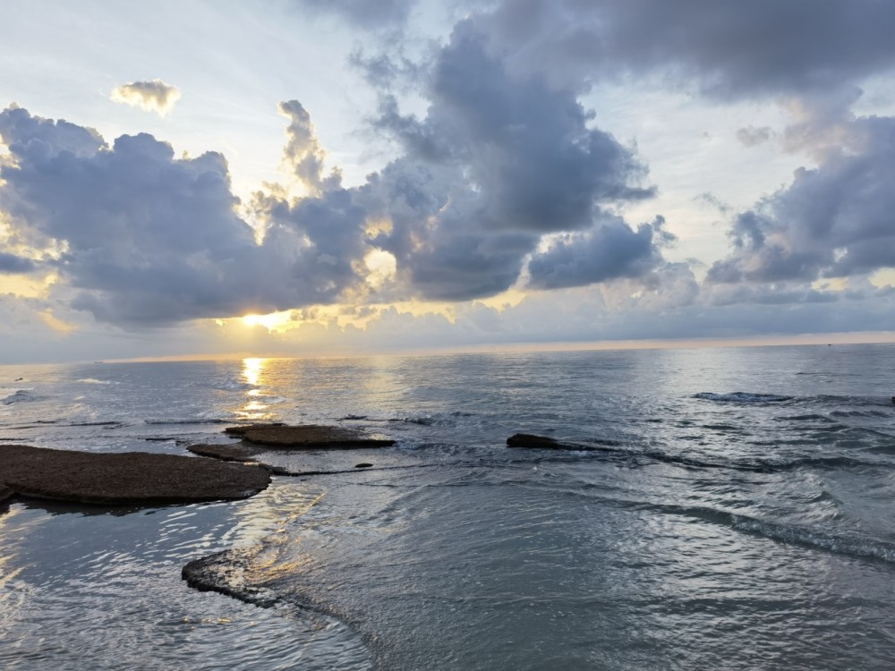 5:10,一个人骑电瓶车到三彩滩拍日出。多云,很遗憾,没有蛋黄跳出来的场景可拍,下图是5:44,6:20拍的日出。