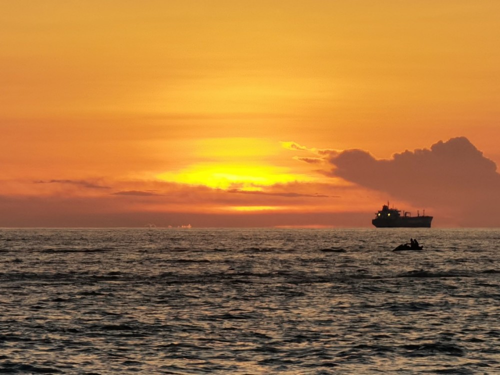 终于看到海面日出像蛋黄跳出来的漂亮美景了,真是不虚此行,没枉费早起的睡觉时间哈!