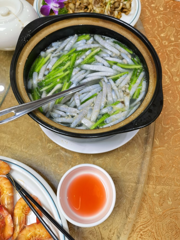 中午到达北海 ( 合浦 )肥佬美食街午饭,先来一顿鲜甜美味的海鲜,如拳头般的花蟹,如乒乓球大的车螺,如大拇哥粗的明虾,以及不是人人都能接受的沙虫汤