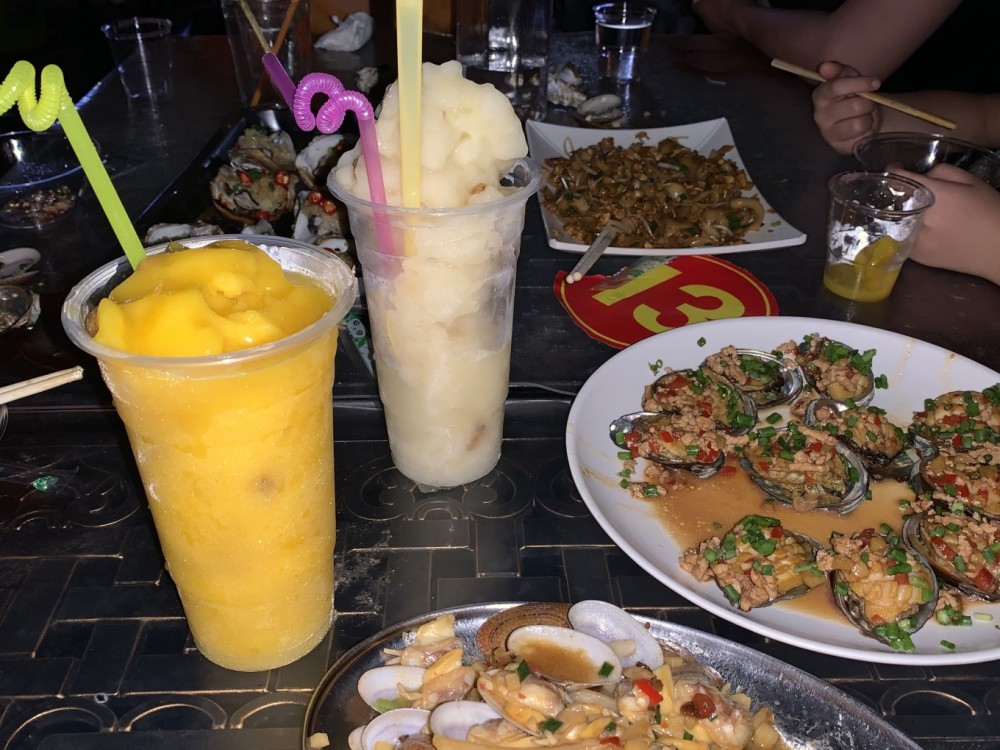 游泳结束后,冲淡,赶到侨港与多年不见的好友香香同学汇合,逛逛侨港步行街,在海边夜宵,强烈推荐炒冰,我用它代替啤酒了。