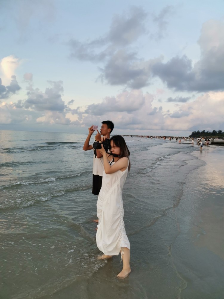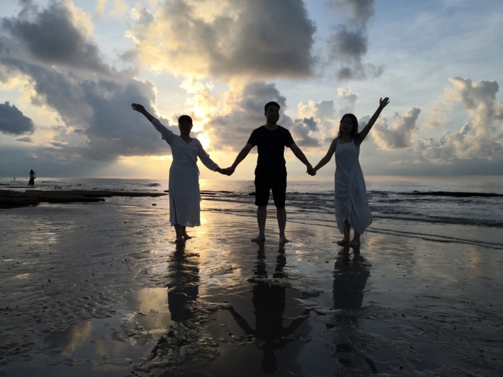住在石螺口海滩附近的民宿,放下行李后,马上换衣服,拿三角架,拍日落,戏水。