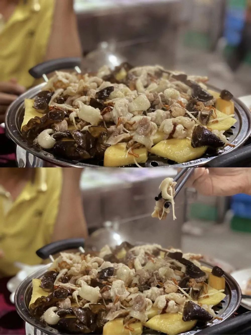 揭开锅滴着肉质的鸡片香气扑鼻,入口伴着虫草花和荷叶的味道,又嫩又弹牙,超级好吃。