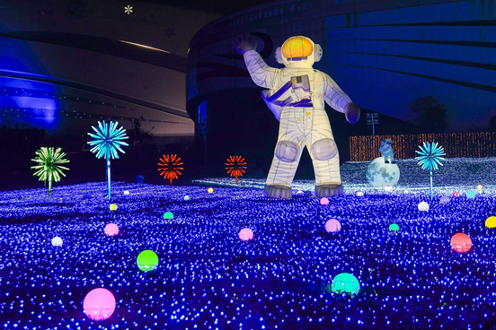 据悉,本届天府熊猫光影节利用园区特有场景创新打造了星际迷航、迷雾森林、行星博物馆、光影熊猫、北极光秀、金玉满堂六大主题光影艺术区,囊括40个网红灯组,带来14万㎡5D绚烂银河、萤火之森、繁光森林、星空光纤树、阿潘多拉奇幻森林等15大网红打卡场景。数千万盏各色灯饰覆盖全园,超50万㎡灯海将为游客呈现一个炫彩夺目的光影游乐园。