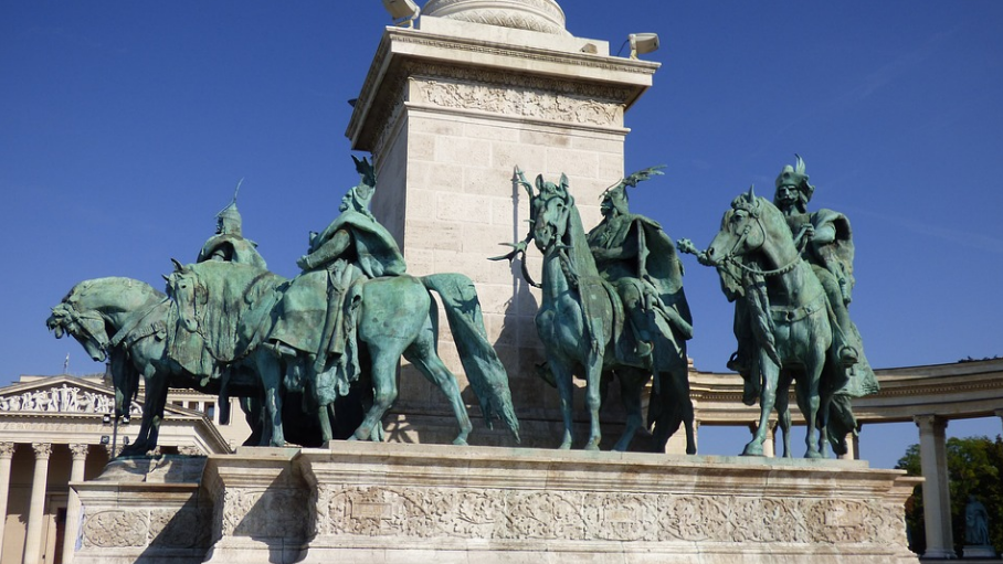 英雄广场(Heroes’ Square)是布达佩斯的地标性建筑,于1896年为纪念匈牙利建国1,000周年而修建。广场周围环绕着匈牙利历史上14位杰出人物的雕像,而大天使加百列(Gabriel)则立于中心柱顶端。这座雕像在1900年的巴黎世界博览会上被授予特等奖。