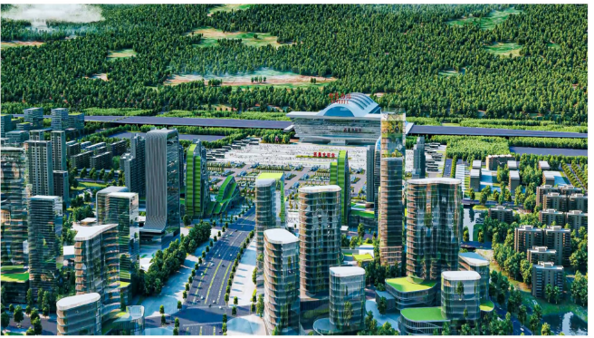 高铁新城总投资160亿元,重大项目包括创新创业中心、建川电影博物馆聚落、农业硅谷、高铁站前广场、高铁站前TOD商务区、大型医院、学校和市政服务中心等。其中,TOD项目规划总面积1000亩,聚焦五大核心功能,全面打造站前现代化商贸服务片区,零换乘立体式综合交通枢纽、会展中心及车站地区城市副中心。