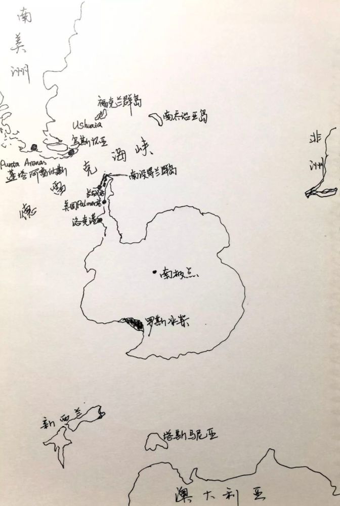 这里借用一下网友“星子走天涯”的手绘南极地图,可以让大家更清楚的了解。