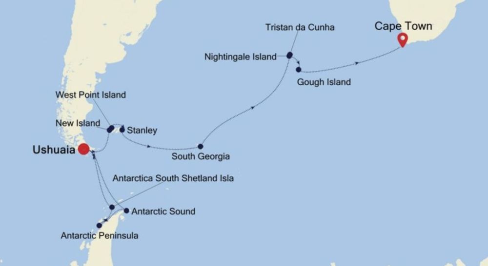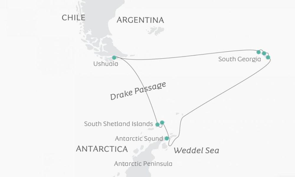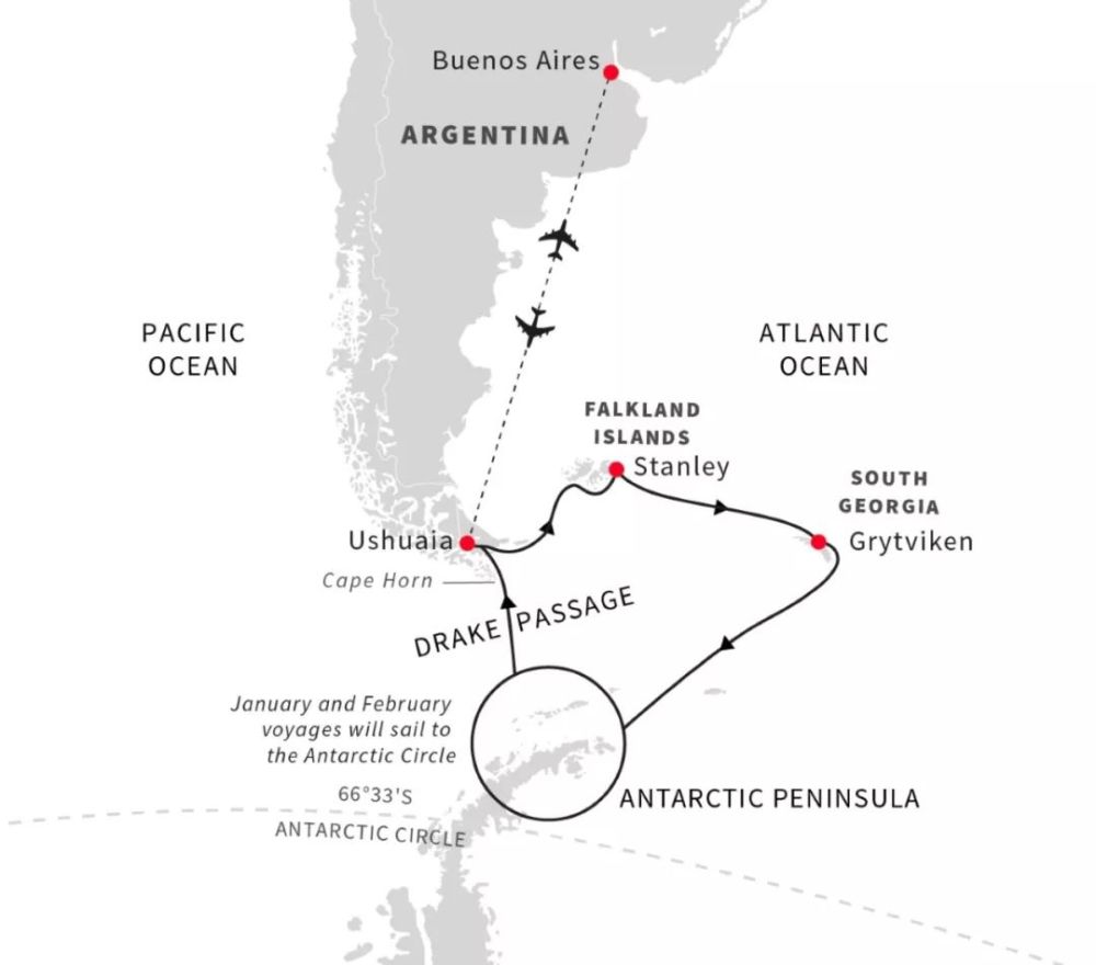 所谓的南极三岛航线,就是去南极半岛、南乔治亚岛、福克兰群岛。