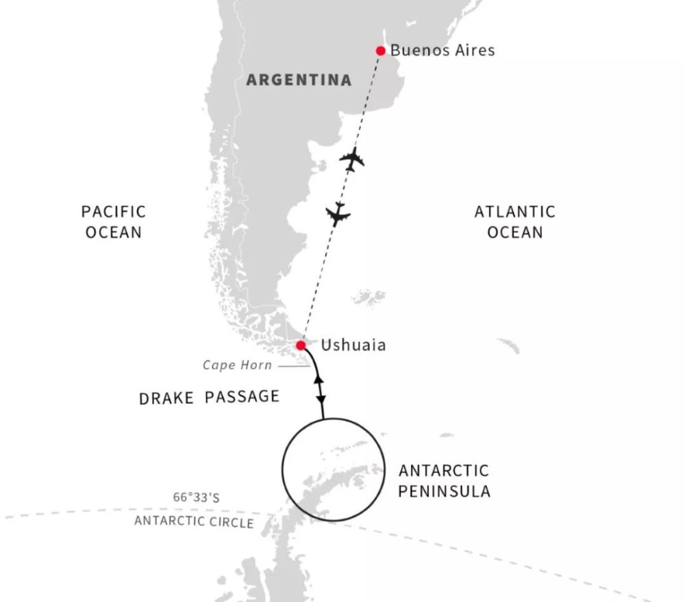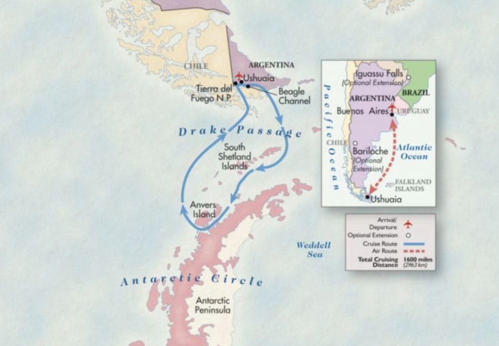 Grand Circle今年有一个船期是在南极,包了美国-布宜诺斯艾利斯-乌斯怀亚的往返机票,14天的行程12,195美元,平均每天872美元。