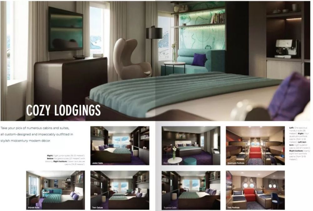 这是Lindblad的新船,下一代探险船的旗舰,专门为了极低而生的那种。设计用于全年航行极地通道,安全地探索未知水域,同时提供卓越的舒适性。
