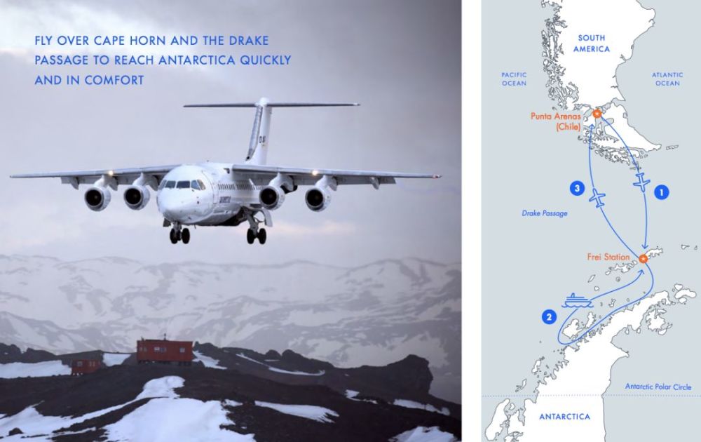 如果时间短,选择Antarctica21绝对不会错,这家主打飞去飞回的航线。也就是说从蓬塔阿雷纳斯飞到乔治王岛,再坐上邮轮。