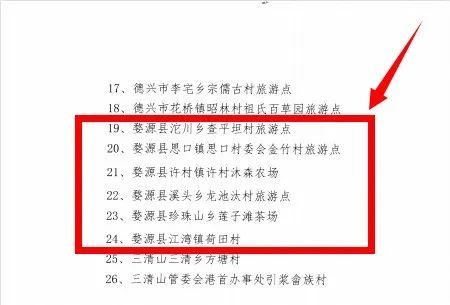 10.龙尾村获评省级4A乡村旅游点,许村镇沐森农场、思口镇金竹村、沱川乡查平坦、溪头乡龙池汰村、珍珠山莲子滩村、江湾镇荷田村等创评3A级乡村旅游点,全县3A级以上乡村旅游点65家,数量位居全省县级第一。