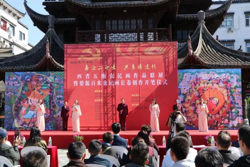 10.“喜迎二十大 共享非遗情”——四省五地农民画作品联展暨婺源农民画百米长卷创作开笔仪式在婺源展出。