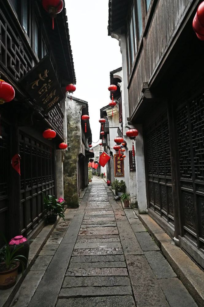 相比水乡古镇,巴城老街就更小了。这里主体就是一街一河。街是清代古街,街道狭窄,为了充分利用空间,两边民居、商店屋檐都向中间挑出,使老街显得更加狭窄,有“一线天”之称。街与河平行,两端由两座桥相连,河另一边也有民居但不是算是古街。这里因是昆曲发源地而知名,但是最大的特点却是悠闲。河两岸的房屋都是背水而居,做了商户的民居大多是茶馆或者咖啡店,本来就小,也没有很多景点,临河看景、喝茶聊天就是来这里该做的。这里水乡风韵尽有,却洗去了旅游景点的浮华喧嚣,坐在河边,有时你就会自然进入冥想发呆的状态,直到旁边的主河道发出了航运大趸船的汽笛轰鸣声才被惊醒,才发现半日浮生已过,该走了。