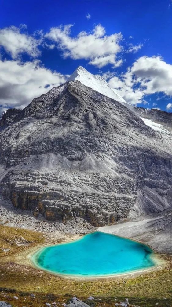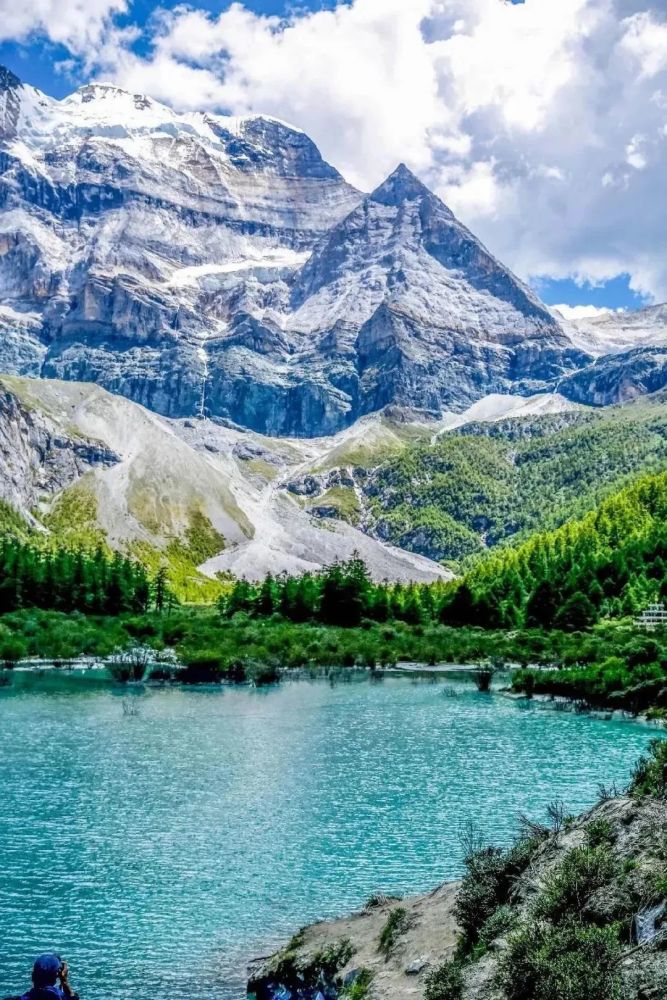 【7-8月】:各色野花儿开满山坡,海子的水也达到最大值,广阔的蓝天白云,蔚蓝的湖水,圣洁逶迤的雪山,活力满满的稻城亚丁,已经呈现。