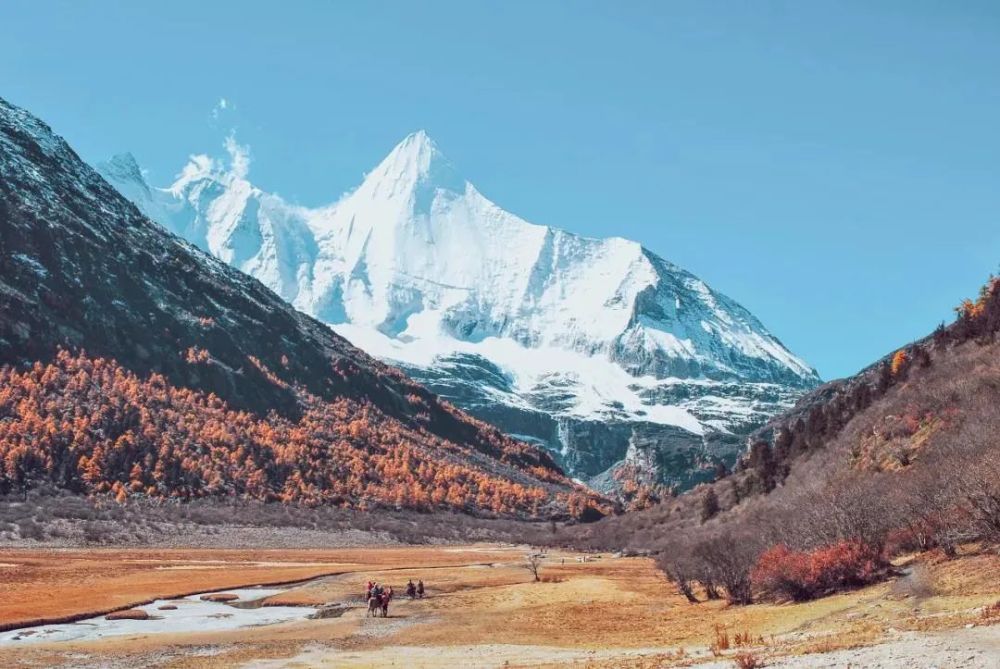 【9-10月】:是稻城一年中最有诗意的季节,草甸的深红,天空的湛蓝,神山的雪白,会让人有一种置身画卷之中的错觉。