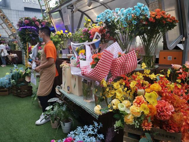 花市是其一大特色。夜巷花园区域内,只见各类品牌花店和花艺装置交错相融,令人仿佛置身于花海。吸引了很多孩子和爱花的女孩们驻足于此,陶醉在现场营造的农场、花园等大自然氛围之中。