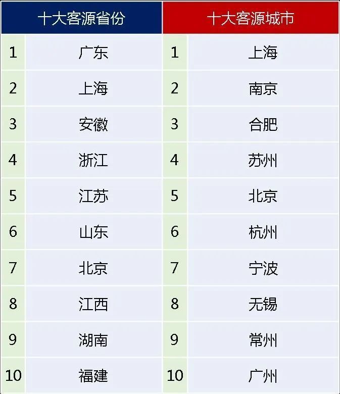 从客源城市来看,长三角核心城市群作为集散中心仍然是徽州民宿主要城市来源。
