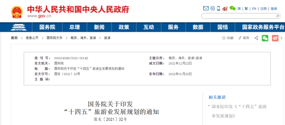 2022年1月20日,国务院印发《“十四五”旅游业发展规划》(以下简称《规划》)。《规划》提出,完善邮轮游艇旅游、低空旅游等发展政策,推进海洋旅游、山地旅游、温泉旅游、避暑旅游、内河游轮旅游等业态产品发展。选择一批符合条件的旅游景区、城镇开展多种形式的低空旅游,强化安全监管,推动通用航空旅游示范工程和航空飞行营地建设。完善公路沿线、服务区、客运枢纽、邮轮游艇码头等旅游服务设施功能,推进通用航空与旅游融合发展。健全重点旅游景区交通集散体系,鼓励发展定制化旅游运输服务。