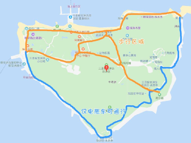 登岛以后,先拿一张岛上的地图,把想要看的景点选一下,因为能够徒步游玩的只是岛的西北区域,其他区域只能搭电瓶车到达,电瓶车根据站点的停靠时间分为几个档次,票价在90-200元不等