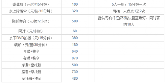 项目的价格会根据淡旺季有所调整,下图是单个项目的价格